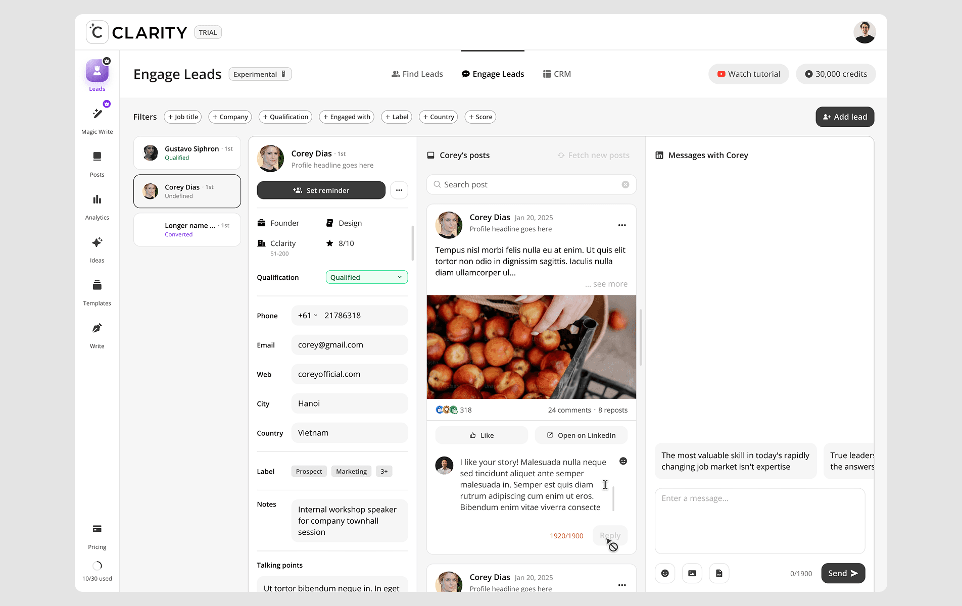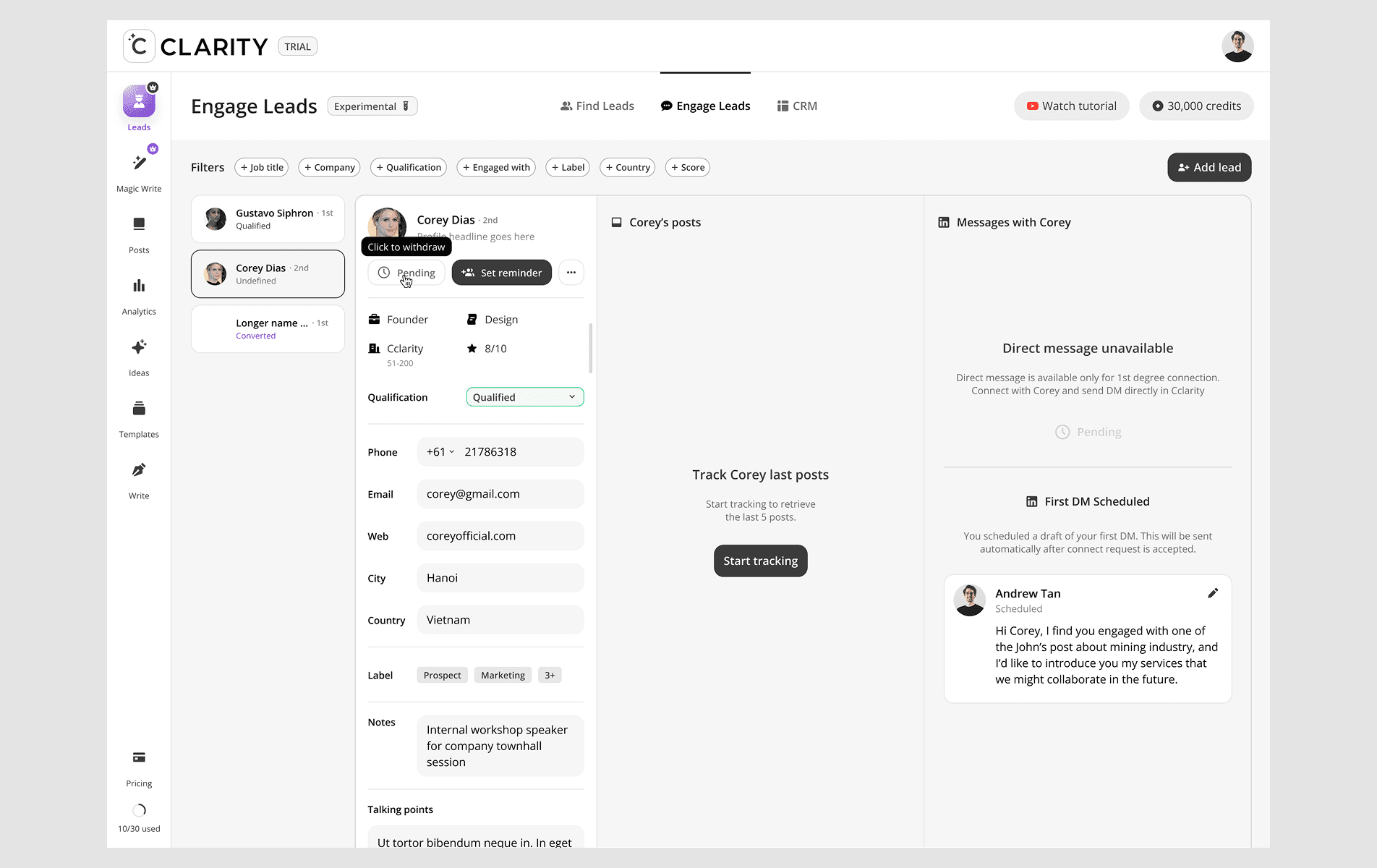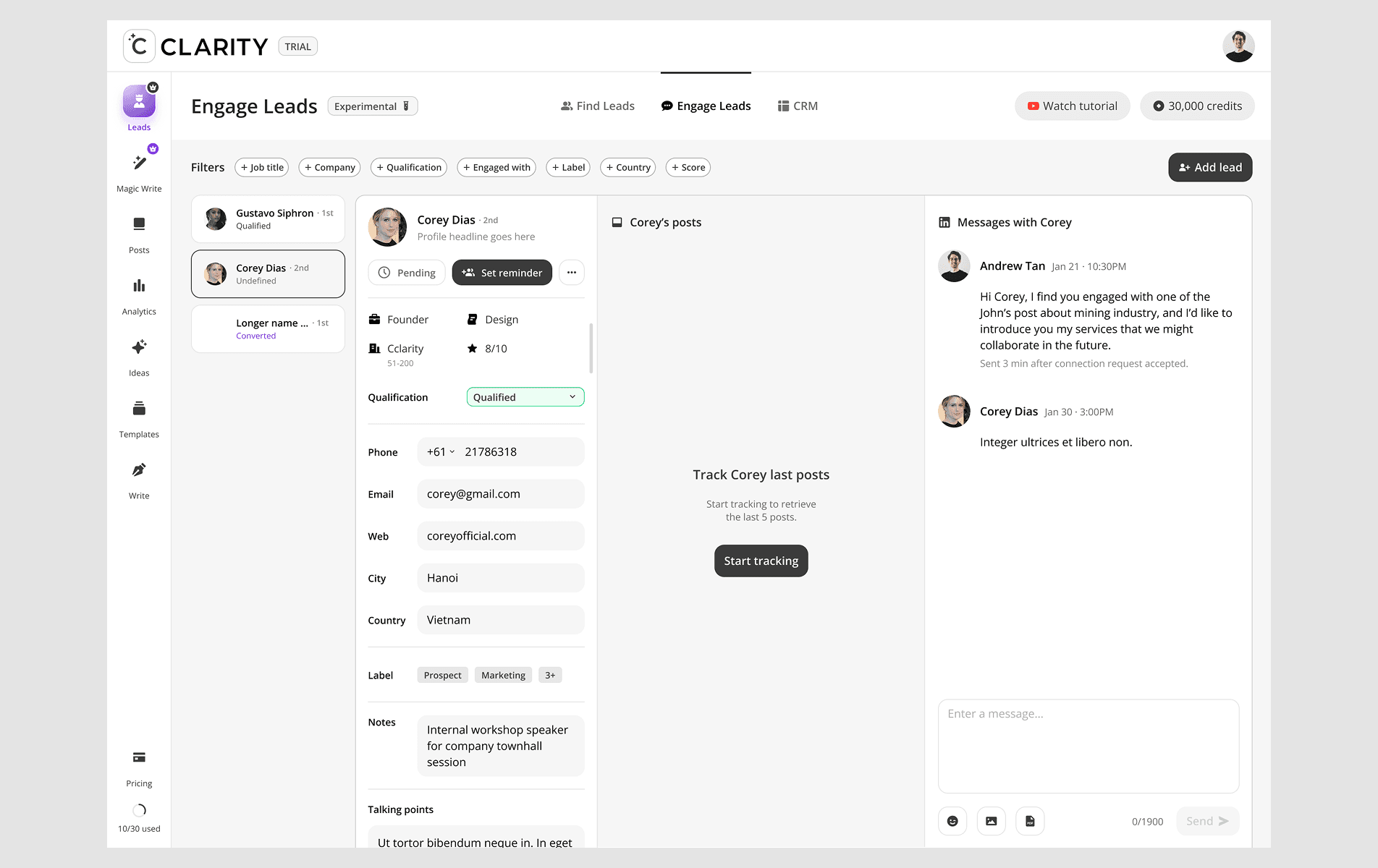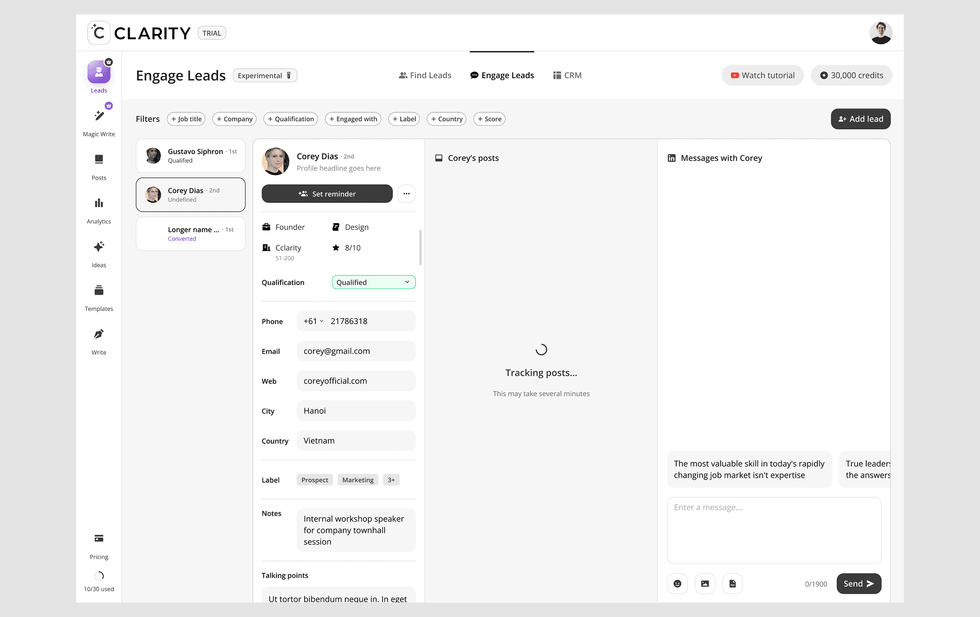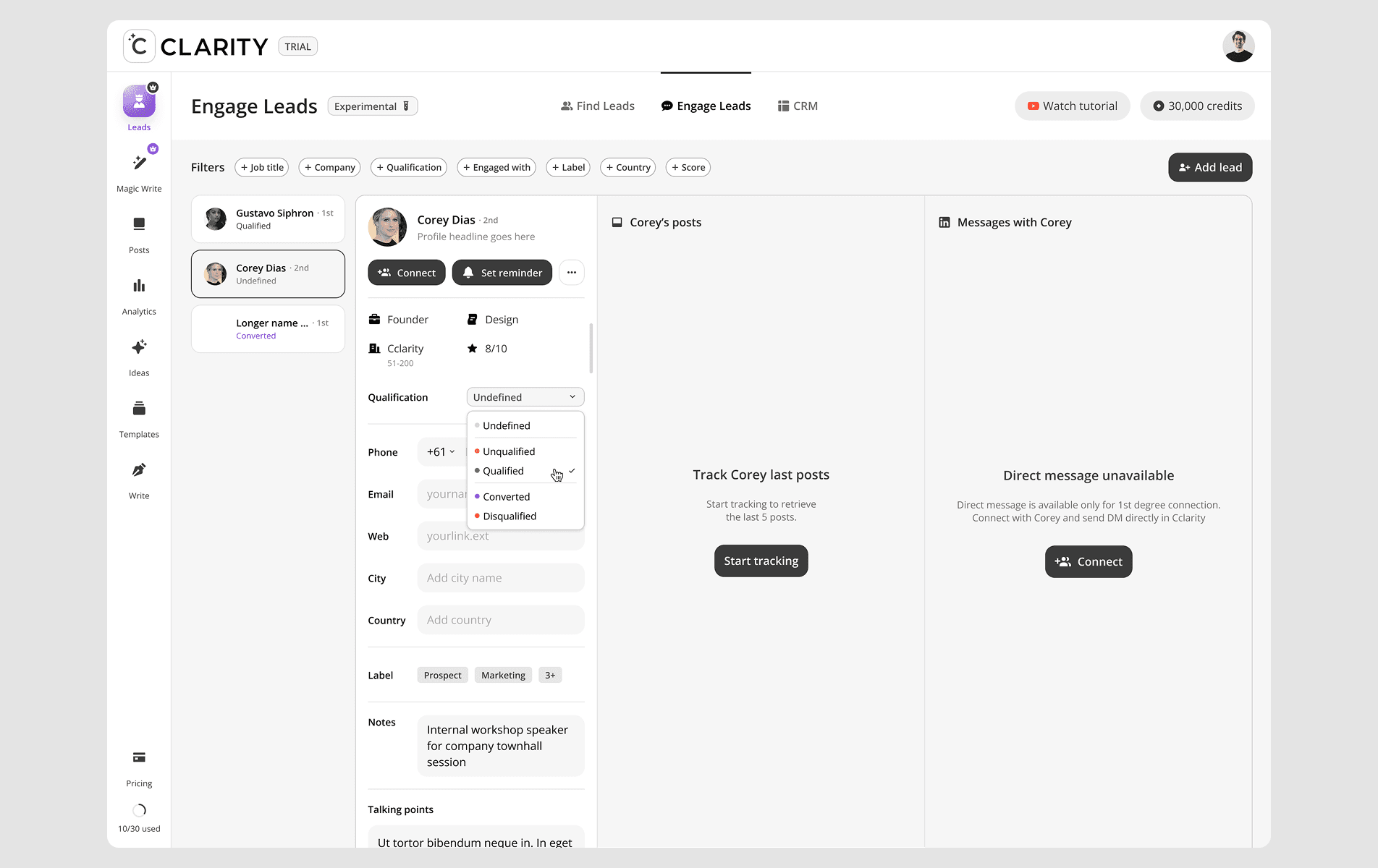 CClarity's Leads feature