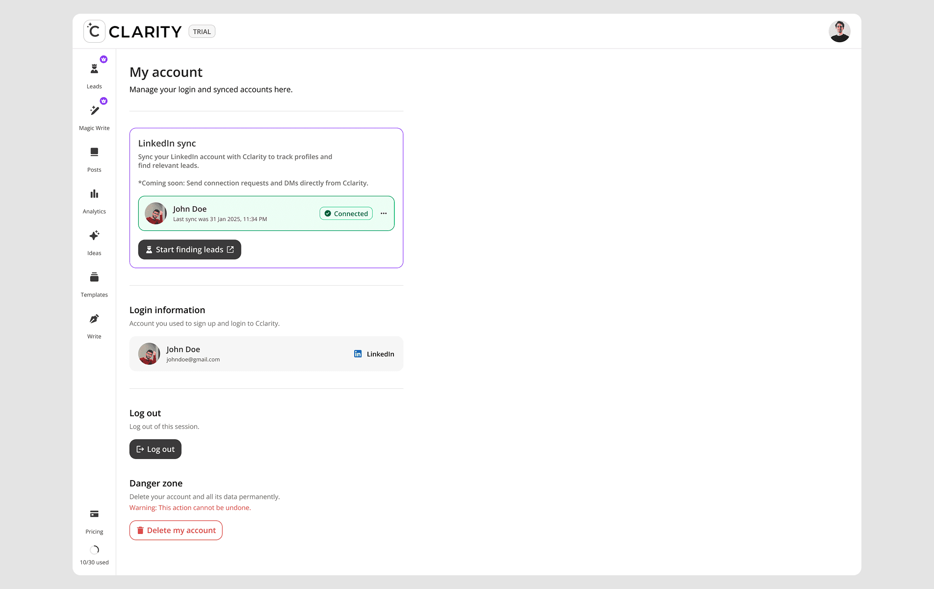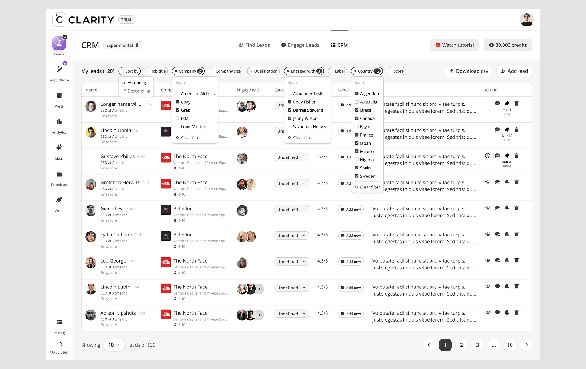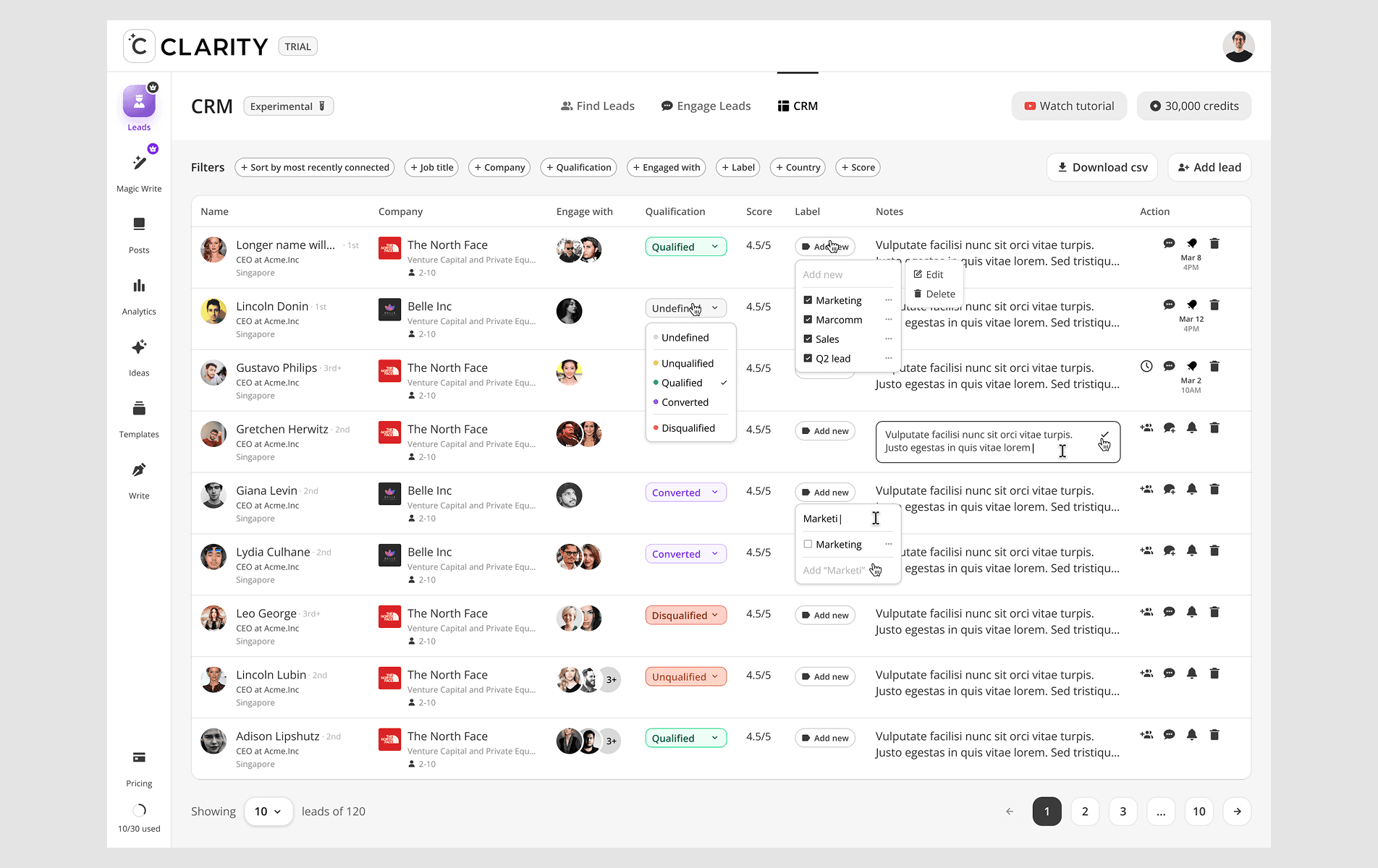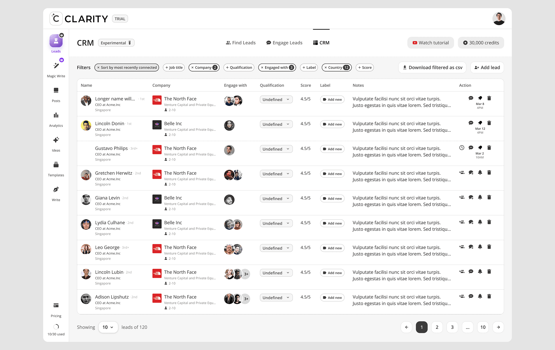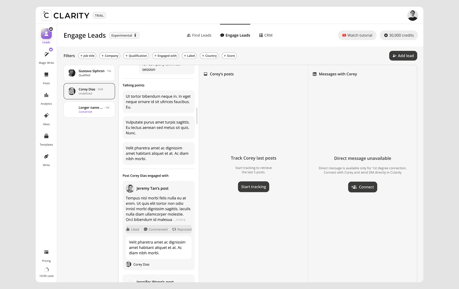 CClarity's Leads feature