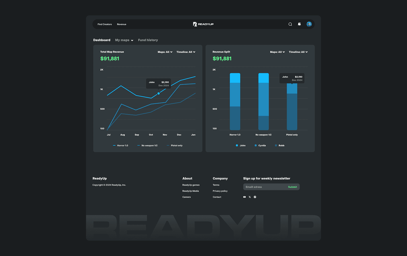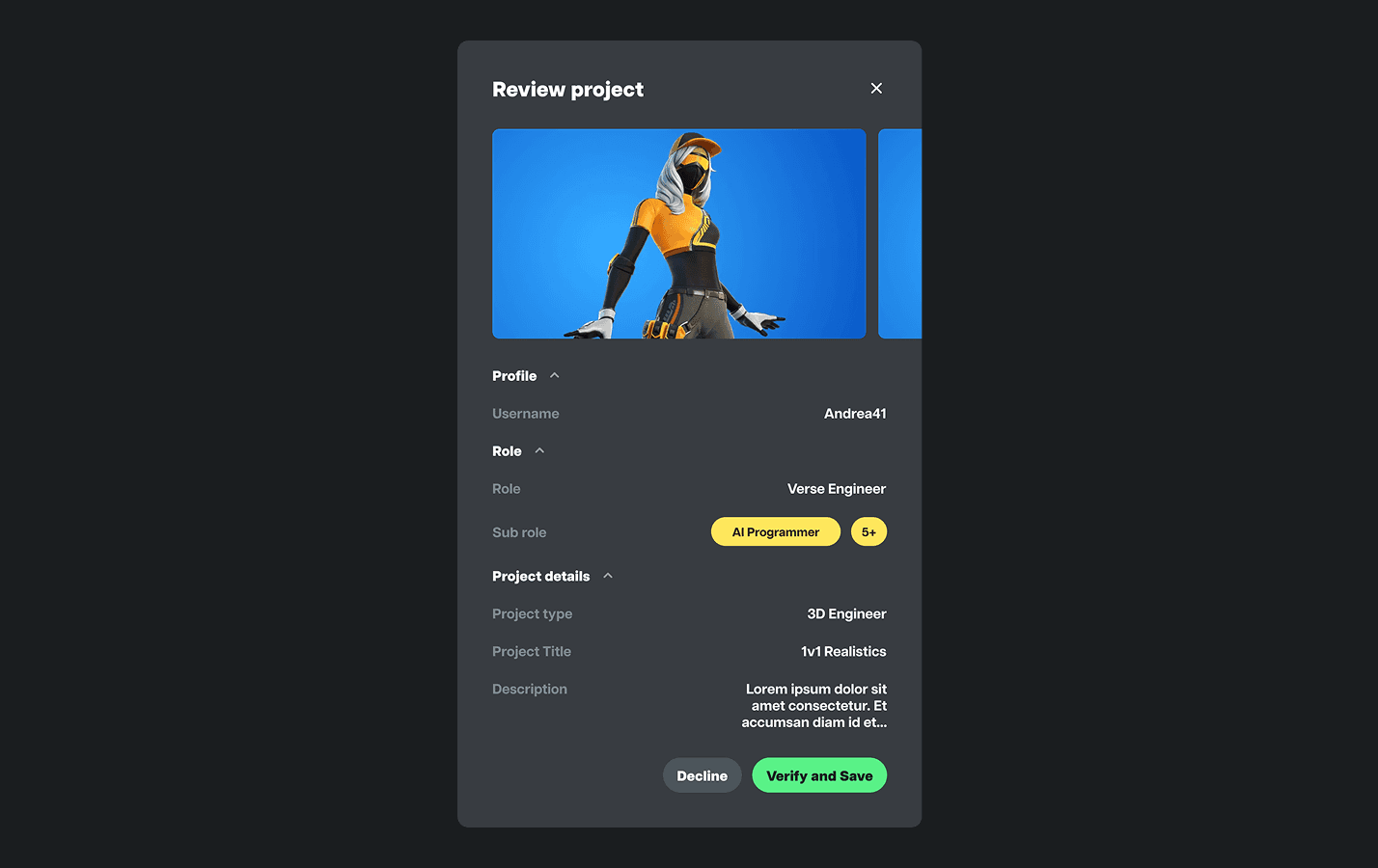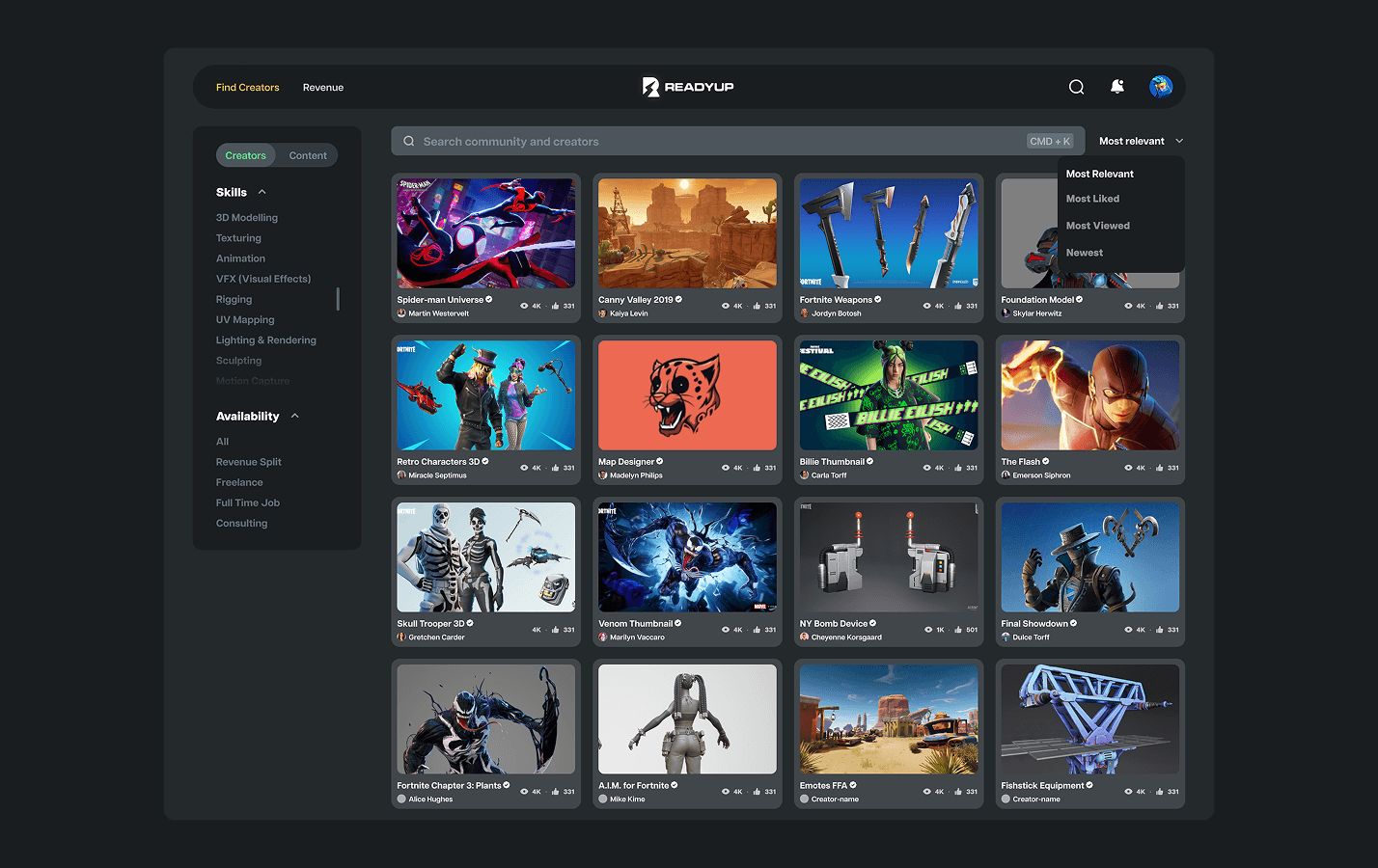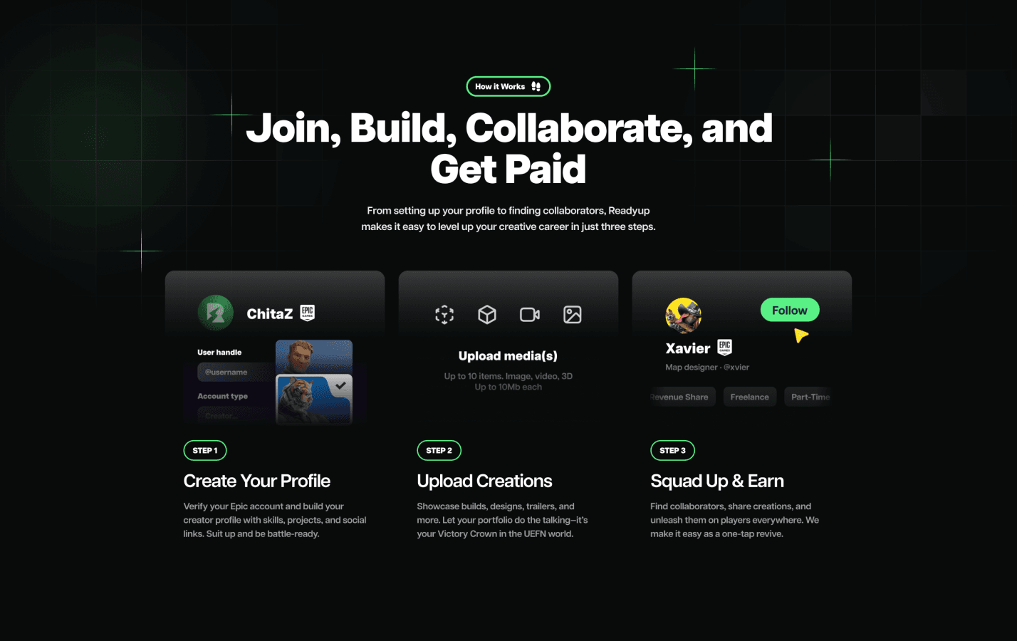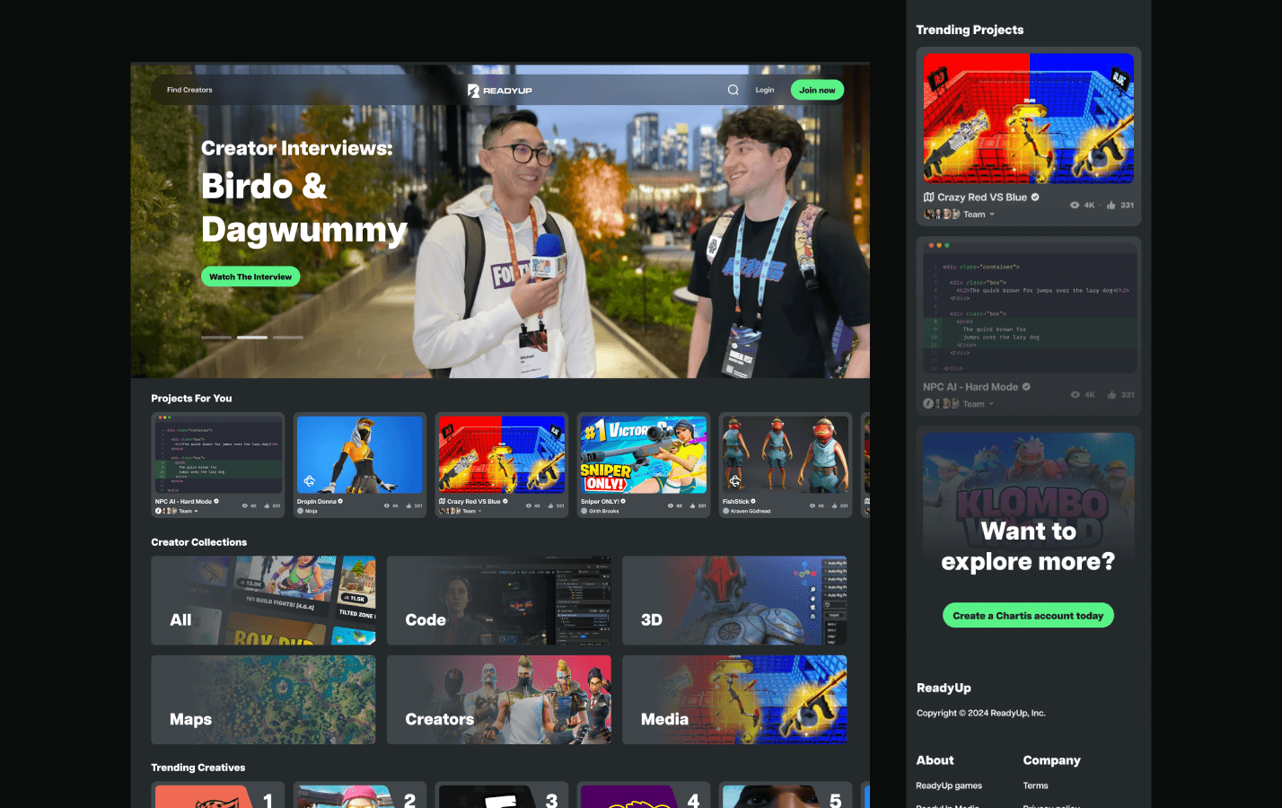 Social platform and tools built for Fortnite Creators, users can showcase their 3D builds, game maps, trailers, and more. As founding designer, I was responsible to led design the interface, pitch deck and graphics assets.