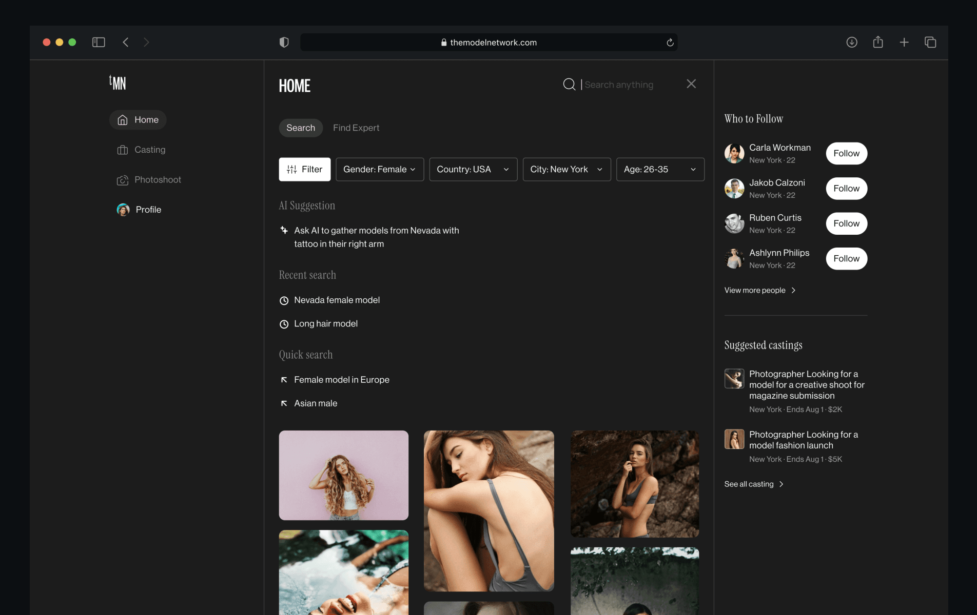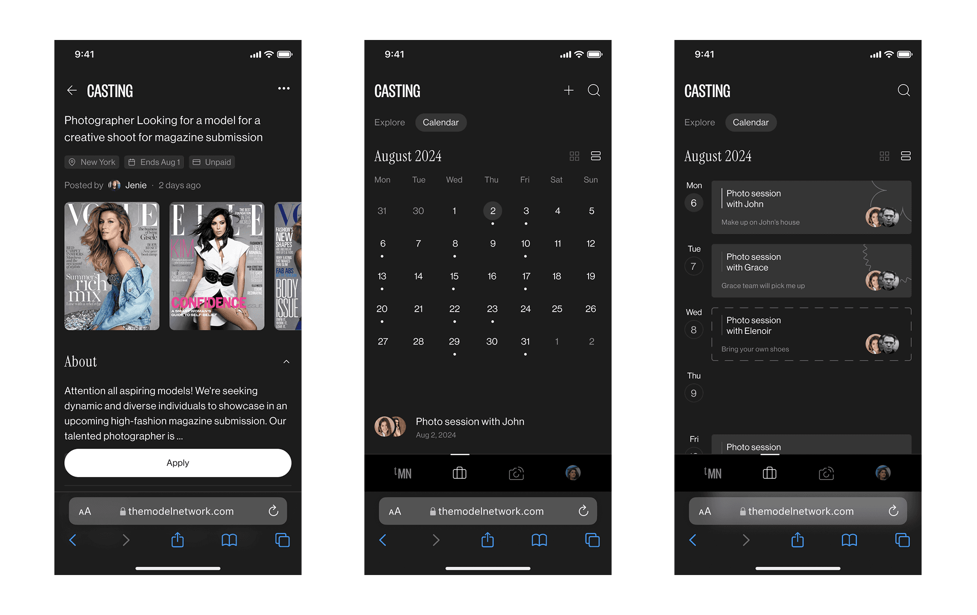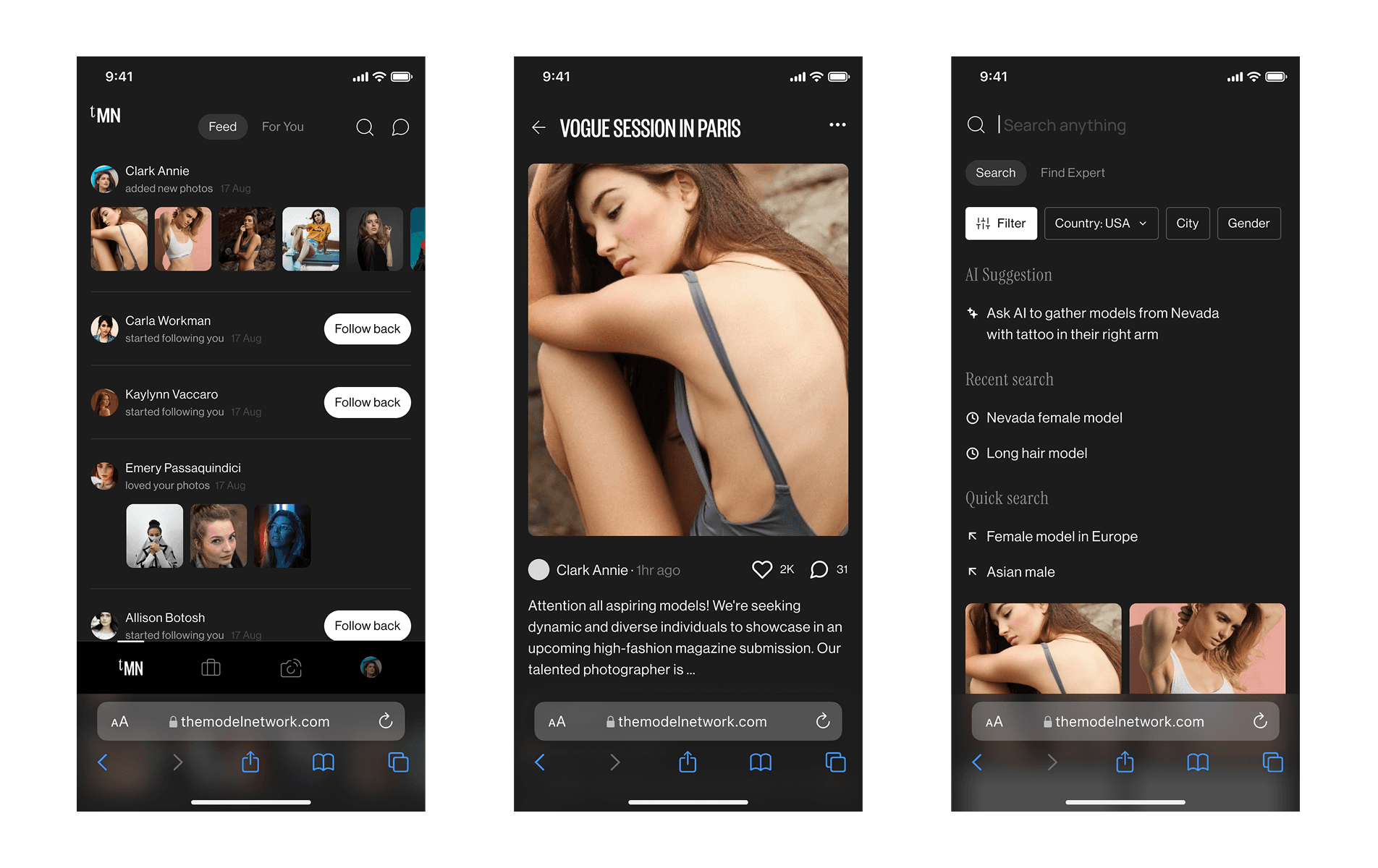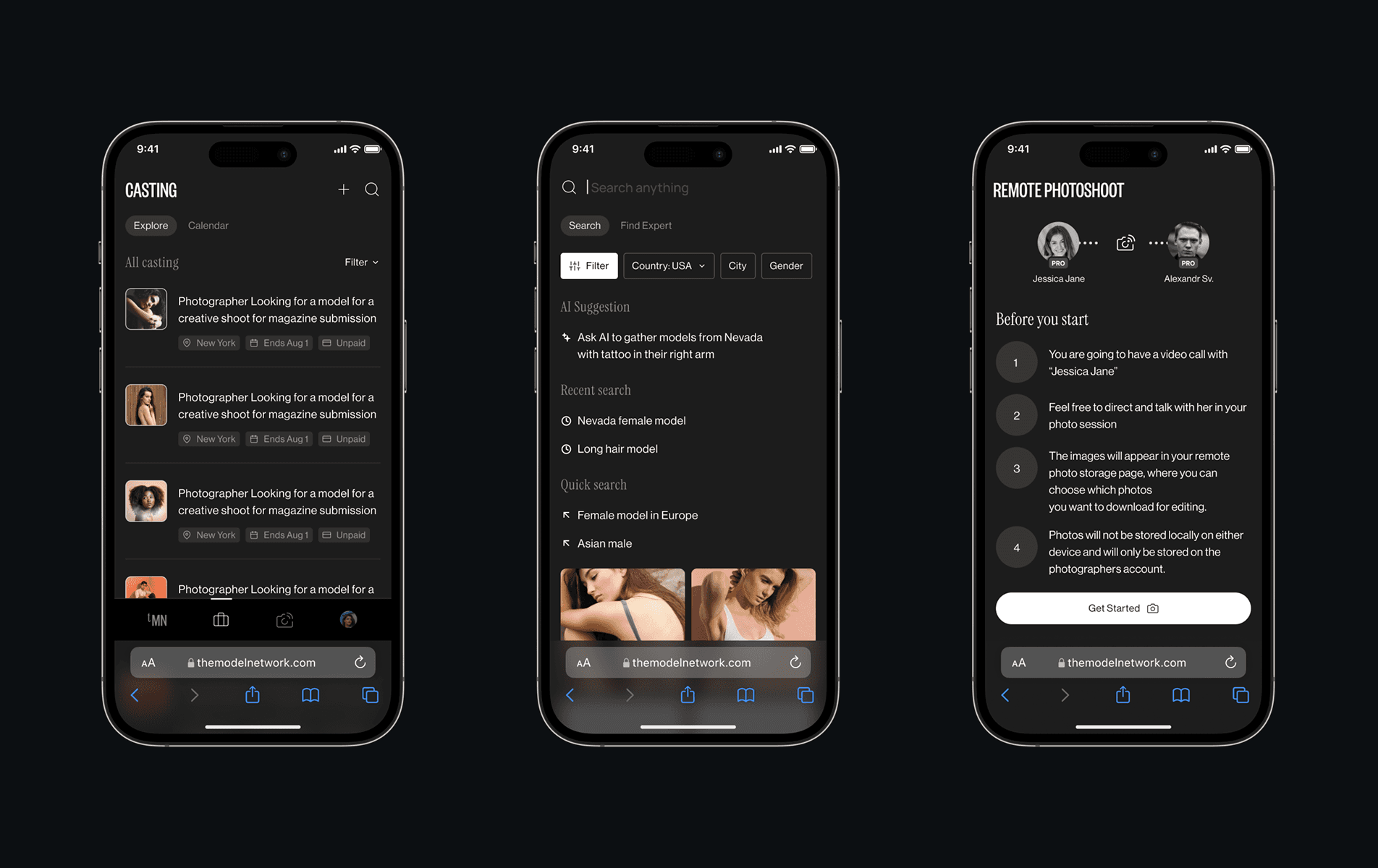 The Model Network transforms talent discovery by connecting models, photographers, and brands with advanced AI-driven tools and online collaboration. I was responsible to led design experience and interface creation.