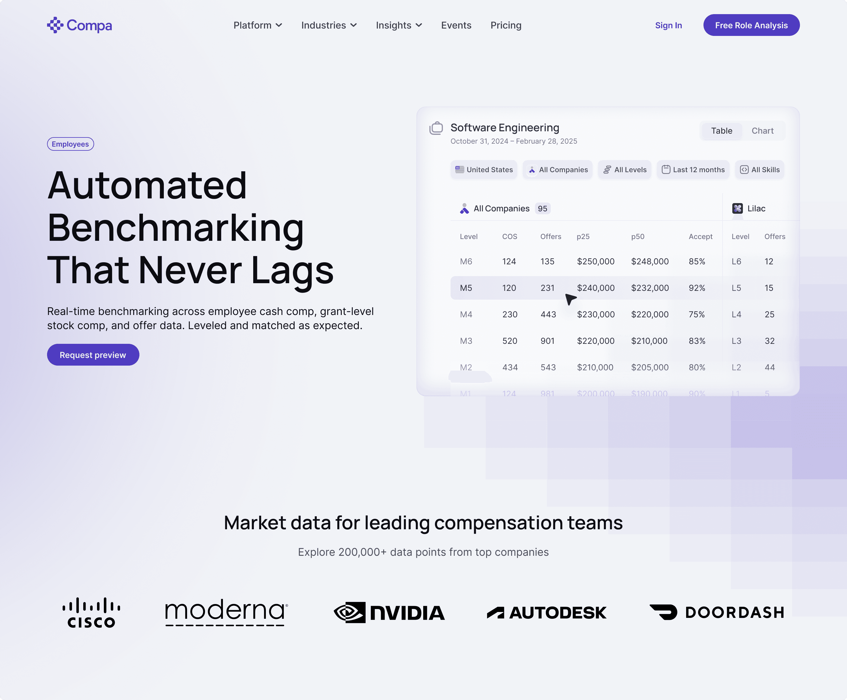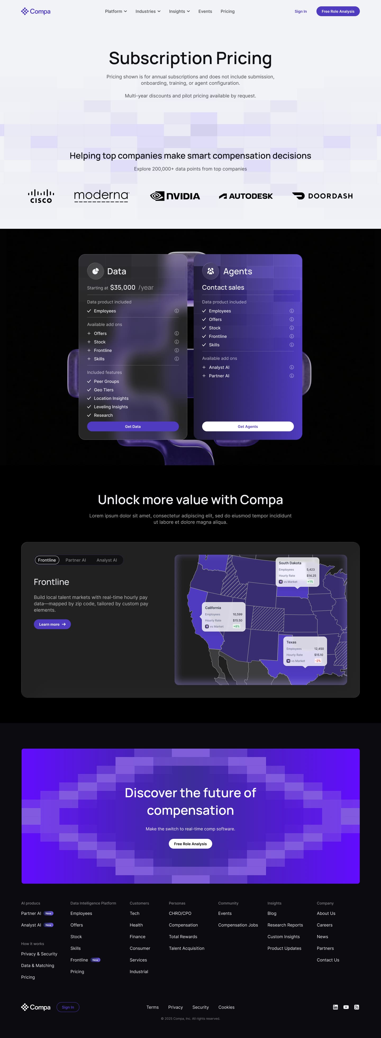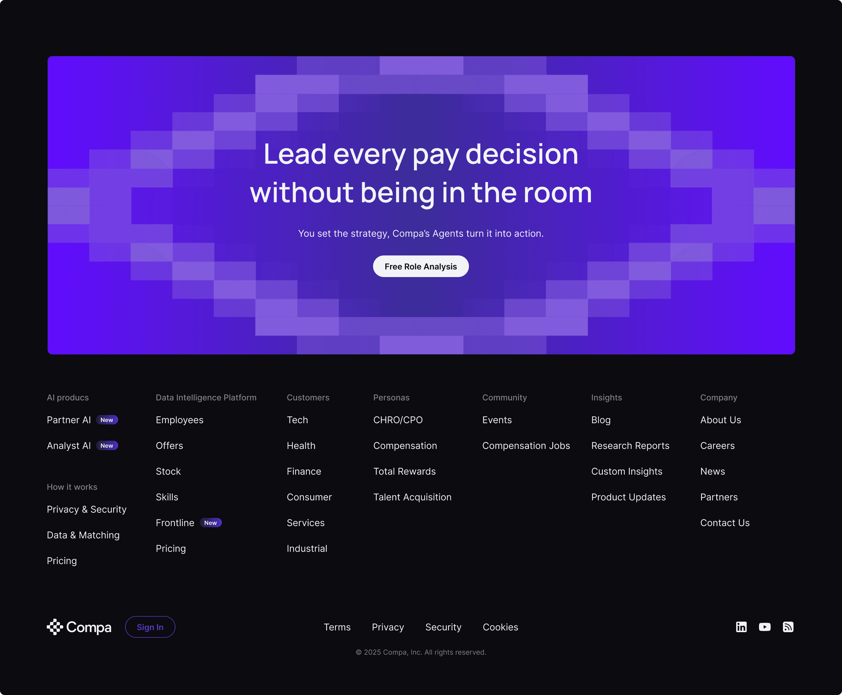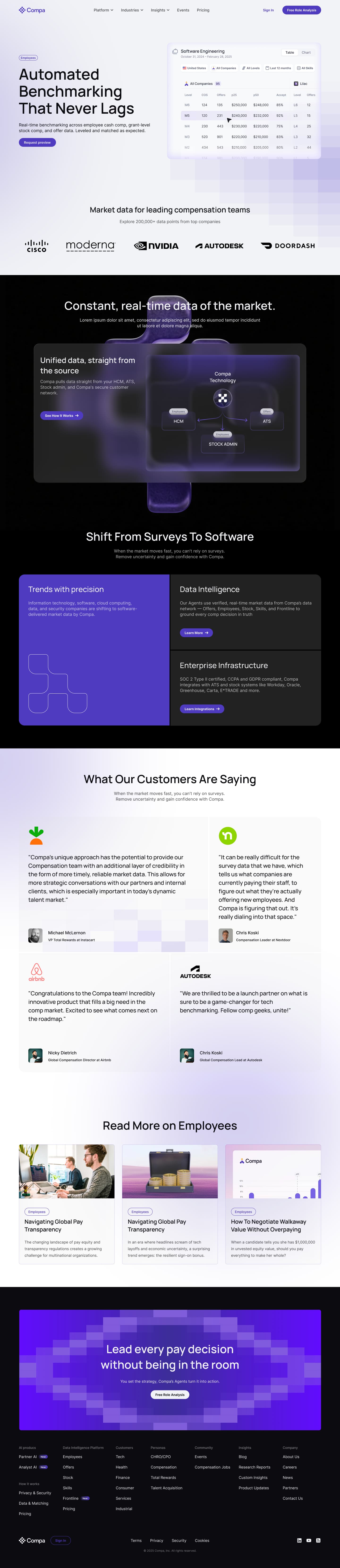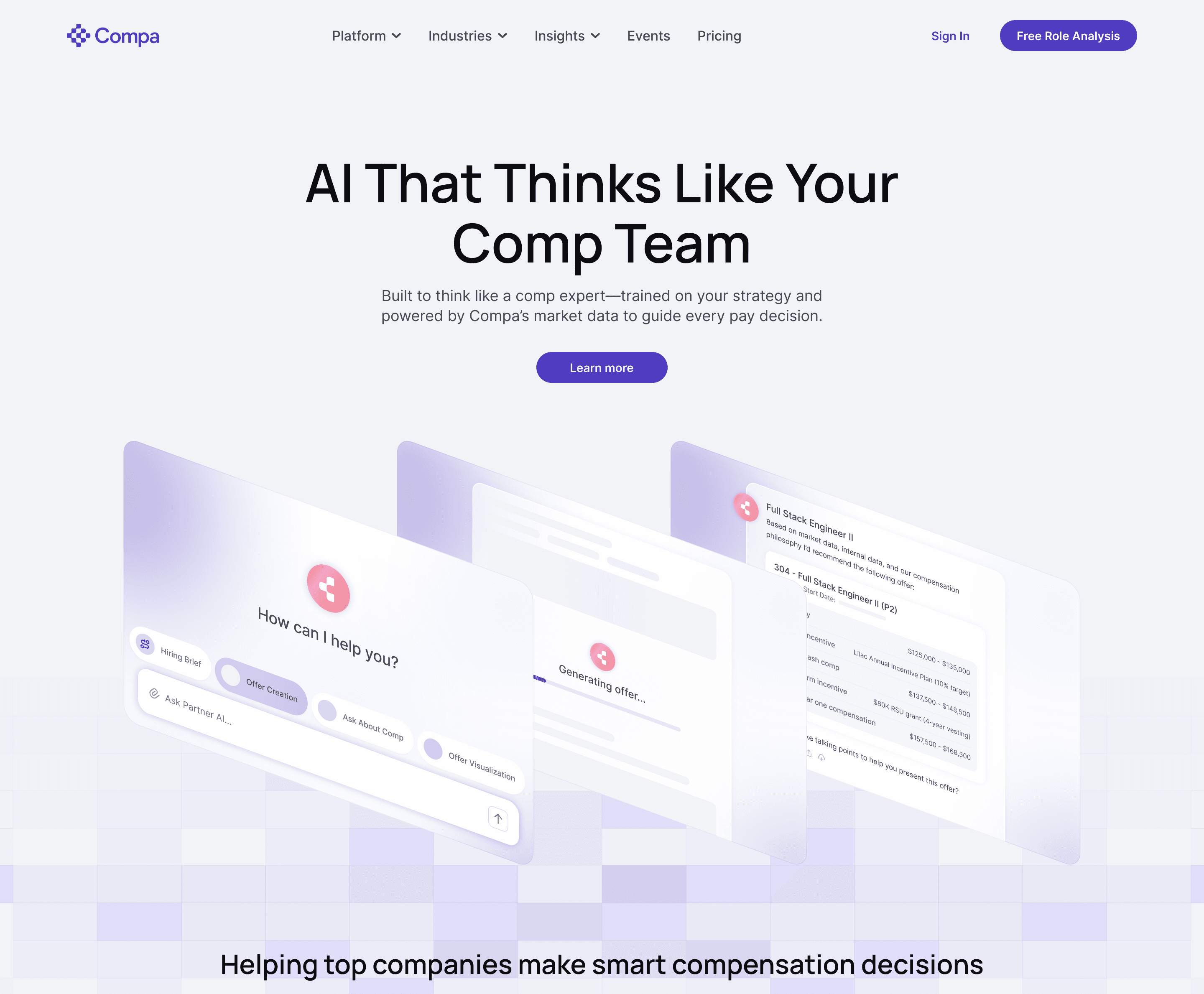 Compa.ai is an AI-driven compensation intelligence platform that helps enterprise companies make data-informed pay decisions using real-time market data from over 9 million observations across 50+ countries. CompaBusiness Wire The platform replaces traditional annual compensation surveys and z with automated market data drawn from systems of record, allowing companies to compare salaries, equity, and incentives against peers while using AI agents to accelerate analysis and surface insights.